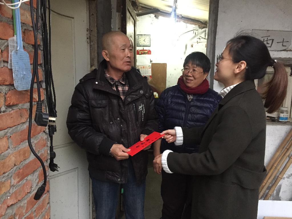 1月17日,市红会副会长章仕才、秘书长温军培等一行人来到西湖区灵隐街道,看望70岁的独居孤寡老人蔡大伯,没有子女的他靠微薄的退休工资维持生计。因为身体重度残疾,为了方便出行,社区帮蔡大伯在家门口“定制”了一个残疾车车位。近年来老人家身体每况愈下,医疗费开支也很大。章会长详细了解大伯身体状况和生活难处,鼓励他树立信心,在党和政府的关心帮助下,共同努力让生活好起来。蔡大伯接过红包,由衷的说:“谢谢红会,谢谢政府,谢谢社区,你们经常上门看我,关心我,我真的觉得很温暖。”慰问组走的时候,他坚持要站起来,拖着残疾的腿蹒跚的把大家送到门口。