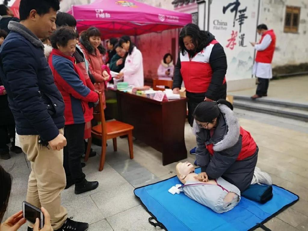 1月14日,金华市金东区红十字会联合区科技局、区科协等部门在塘雅镇开展的“金东区科普送下乡”活动,将急救知识送下乡,提高群众自救互救能力。