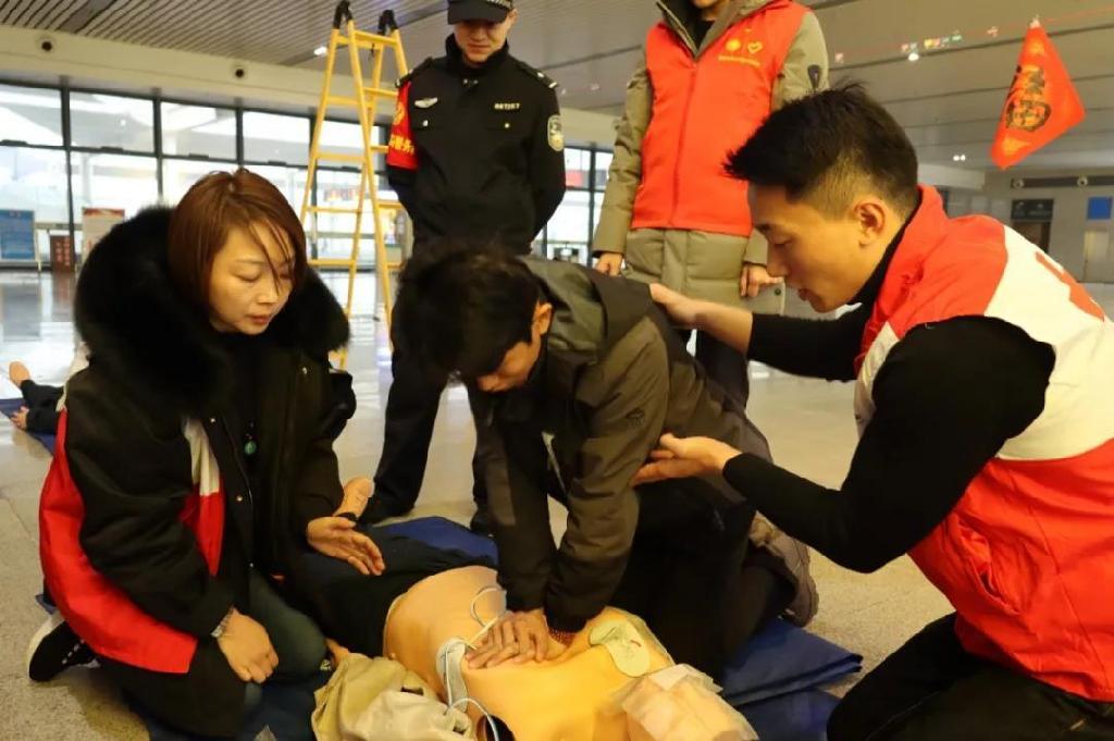 1月10日,湖州市红十字会联合国网湖州供电公司“闵华团队”在湖州高铁站开展应急救护培训志愿服务,为返乡旅客普及应急救护知识,详细讲解心肺复苏术的操作流程和AED(自动体外除颤器)的使用方法,吸引了众多旅客围观学习。