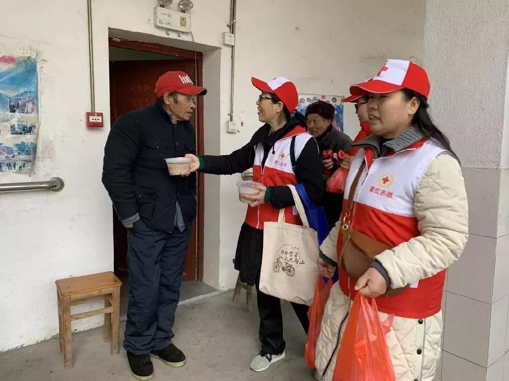 长兴各乡镇(街道)、村(社区)红十字志愿者们将腊八粥分发给过路的居民、辛苦劳动的环卫工人,还将腊八粥送到辖区内退伍军人、乡贤老人、独居老人、高龄老人、残疾人士家中,在寒冷的冬天送去温暖祝福和浓浓关爱。