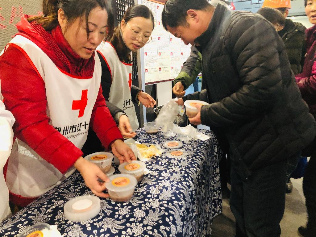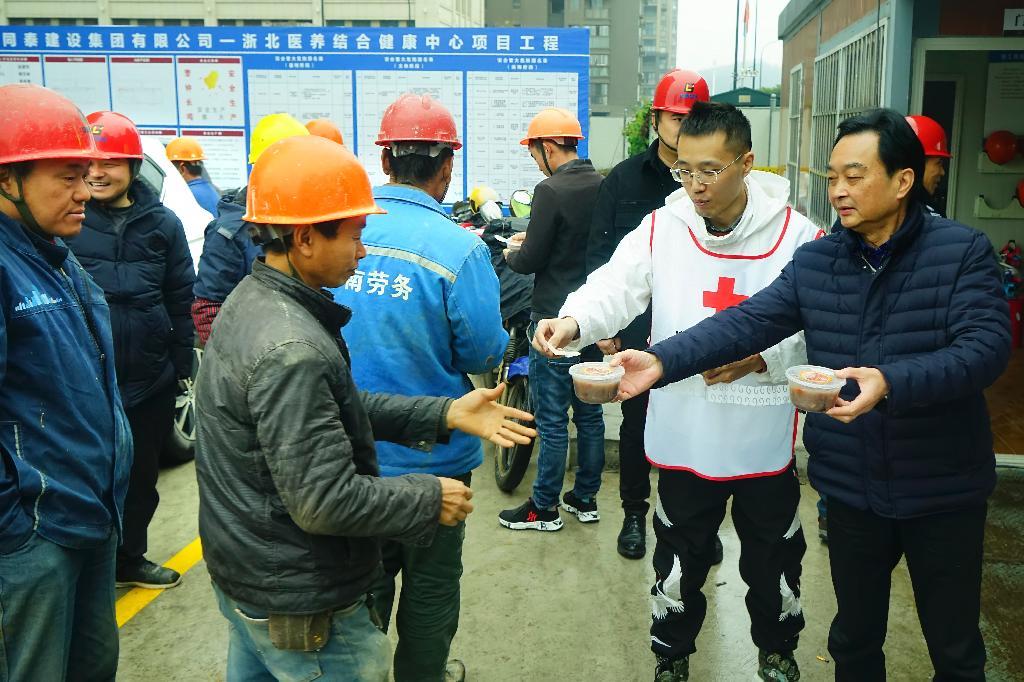 上午6点起,湖州市红十字志愿者宣传服务队以及浙北医馆分队的红十字志愿者,分别赴吴兴区公安分局、飞英街道派出所、东城医养中心建筑工地、市环卫处等地,为工人师傅、公安干警、环卫工人以及市民朋友送上3000余份精心熬制的腊八粥,向这些辛劳的一线工作者致以慰问和关怀,送上红十字人的美好祝福。