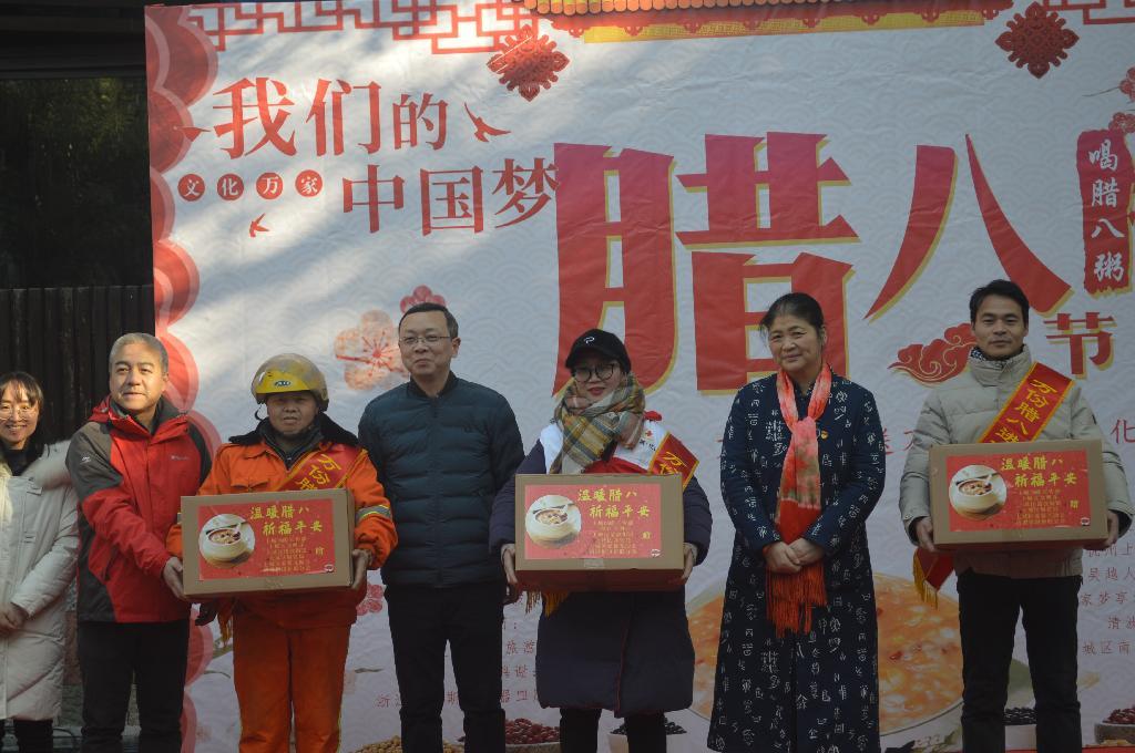 活动现场,由街道红字会志愿者、平安夜鹰队、城市美容师、文明志愿者等组成的“腊八使者”,带着上万份爱心腊八粥从鼓楼出发,开启当天的腊八节施粥公益行,爱心使者们分成几个小组,奔赴在清波辖区的大街小巷,为环卫工人、残疾人家庭、行动不便的老人等,挨家挨户为他们送上热腾腾、香喷喷的腊八粥,也为他们带去一份节日的温暖和祝福。