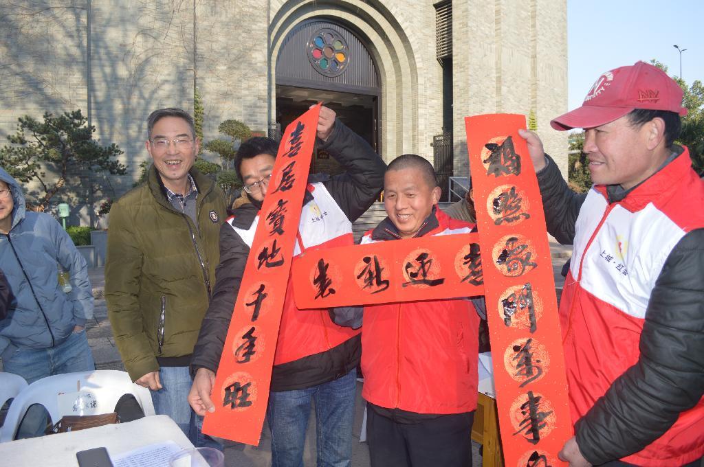 同时,来自浙江省老干部书画协会的成员和文化助残志愿者等还在现场挥毫泼墨,亲手用毛笔书写的“福”字和春联,由红字会志愿者们逐一为现场等候的居民送上,用实际行动进一步诠释了人道、博爱、奉献的红十字精神,通过善举为他们献上冬日里的一份温暖,现场洋溢着浓厚的年味,大家一道喜迎新年、祈福平安。