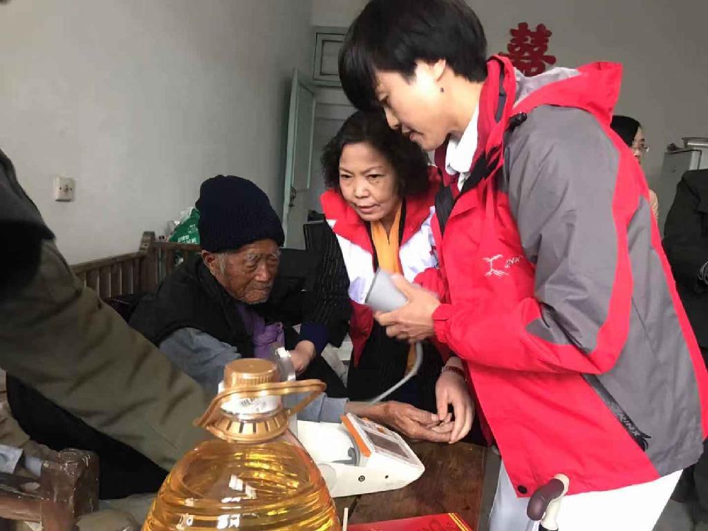 活动期间,郑杰和寿清带队来到村里的困境家庭及行动不便的高龄老人,为他们送上了爱心防跌包、慰问金和慰问品,随行的医务人员还为老人测量血压,并对老人及其家人进行了养老护理、保健等方面的知识普及、技能指导。