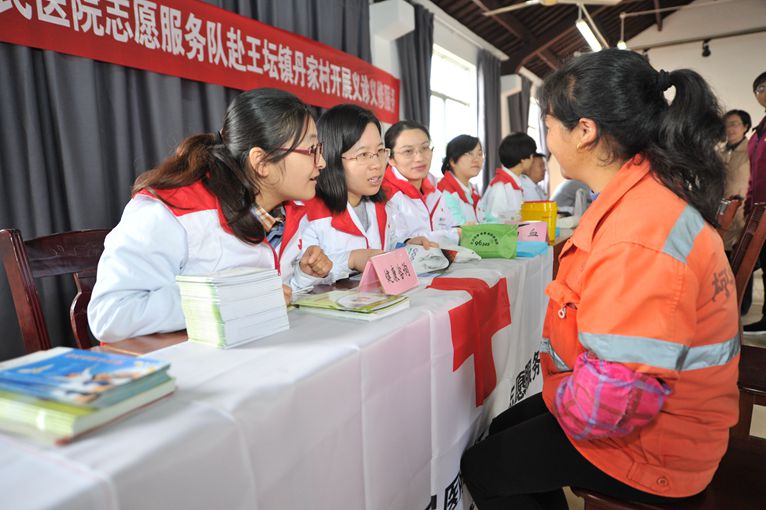 在文化礼堂服务现场,红十字医务志愿者为当地村民现场义诊约60余人次,发放健康资料近百份,进行B超检查、血糖监测60人次,现场维修电视机等15件。
