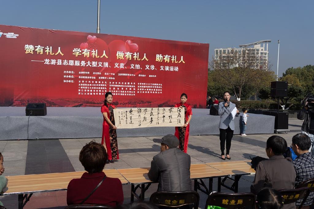 为倡导志愿服务精神,推动衢州有礼在龙游有效落地,推进示范文明县城创建步伐,形成“好人有人学、好人有好报”的社会风尚, 11月23日,龙游县在荣昌广场举行“赞有礼人、学有礼人、做有礼人、助有礼人”大型义捐、义卖、义拍、义诊、义演志愿服务活动。活动由县委宣传部、县文明办、县红十字会、龙游县群团联合中心、县创建办、县有礼办主办,县志愿服务联合会、龙游爱在人间协会承办。