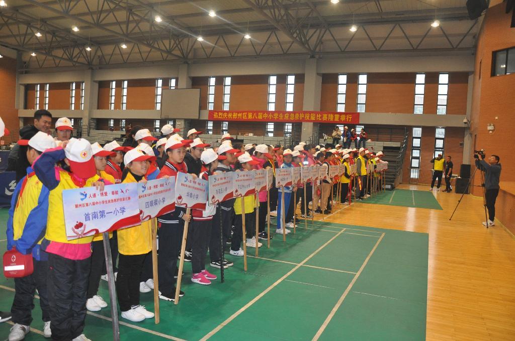 本届中小学生应急救护技能比赛由区教育局、区红十字会主办,鄞州外国语中学承办。比赛分小学组和初中组二个组别,小学组竞赛科目为现场指挥、止血、包扎、固定,中学组另加心肺复苏科目。