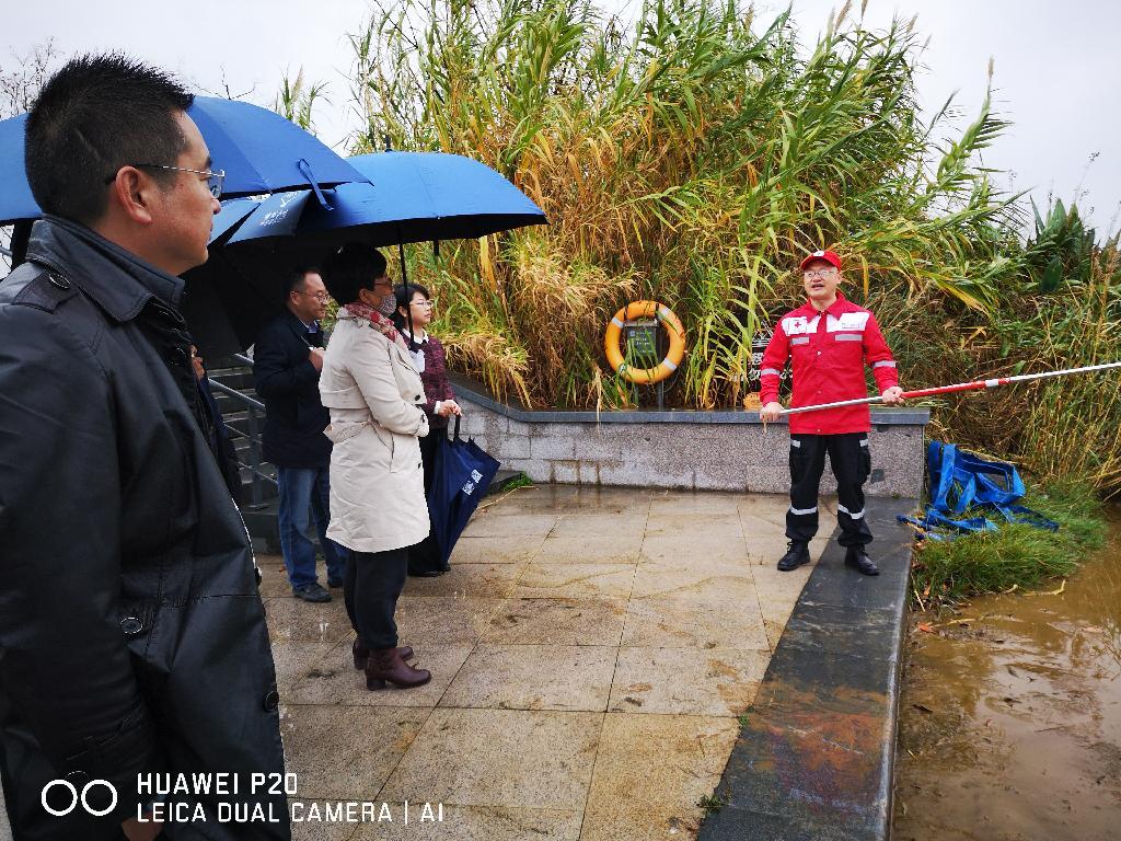 座谈会前,与会人员前往美妙三公里河道、艇湖城市公园现场踏看了救生装备的设置情况,红十字应急救援队现场示范讲解防溺水装备的使用方法。