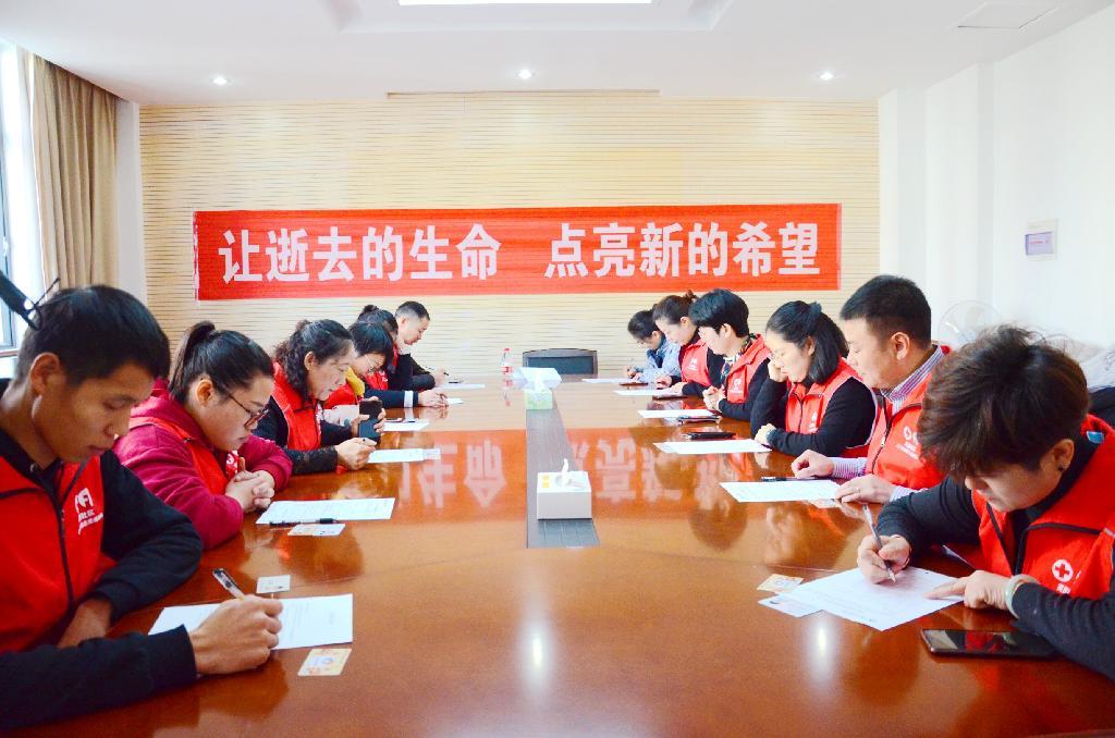 12月12日,北仑区红十字会迎来了一批客人——新碶街道芙蓉社区红十字博爱志愿服务队的志愿者们。他们在队长王华峰的带领下,前来进行器官捐献志愿登记。