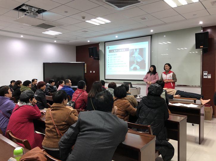 为了达到良好的培训效果,绍兴市红十字会请来了省一级应急救护培训师资喻立娣老师和有着丰富手语翻译经验的胡老师进行“双师资”授课。两位老师在课前进行了充分的沟通,对一些专属词语的表达方式达成一致意见,在授课现场以PPT结合实操训练的形式,讲授了心肺复苏、海姆立克急救法等一些日常生活中必要的急救知识。专业的红十字应急救护培训老师加上“身”情并茂的手语翻译,为学员们带去了一堂“无声胜有声”的应急救护普及课程。