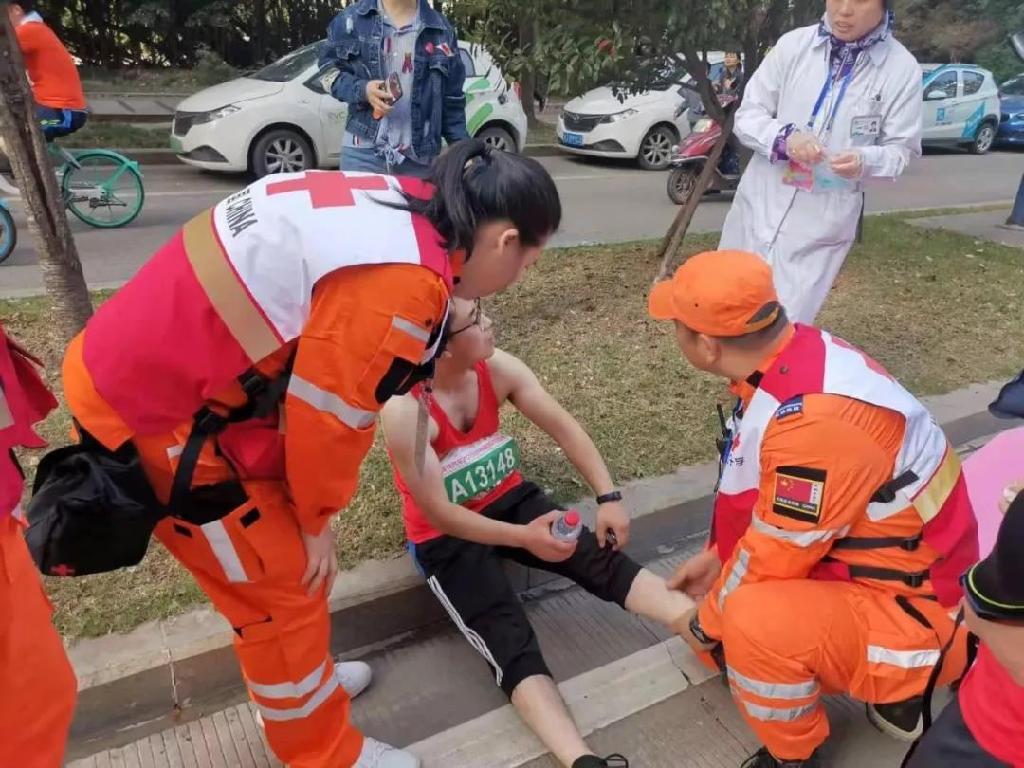 据悉,在本次比赛中,医疗志愿者们联系医疗站点70余次,提供喷雾服务9600余人,肌肉拉伸70余人,并提供冰袋、创可贴、绷带、消毒棉球、保温毯、能量品等物资近300次。这些红十字医疗志愿者们站好赛道救援“第一岗”,共同守护跑者的生命安全。
