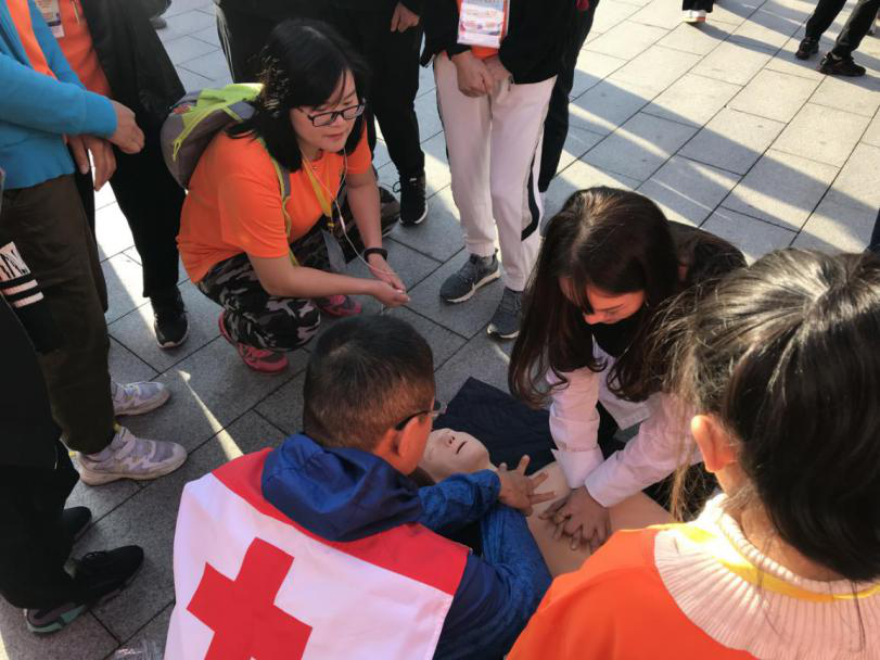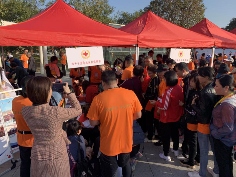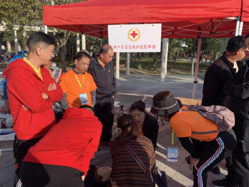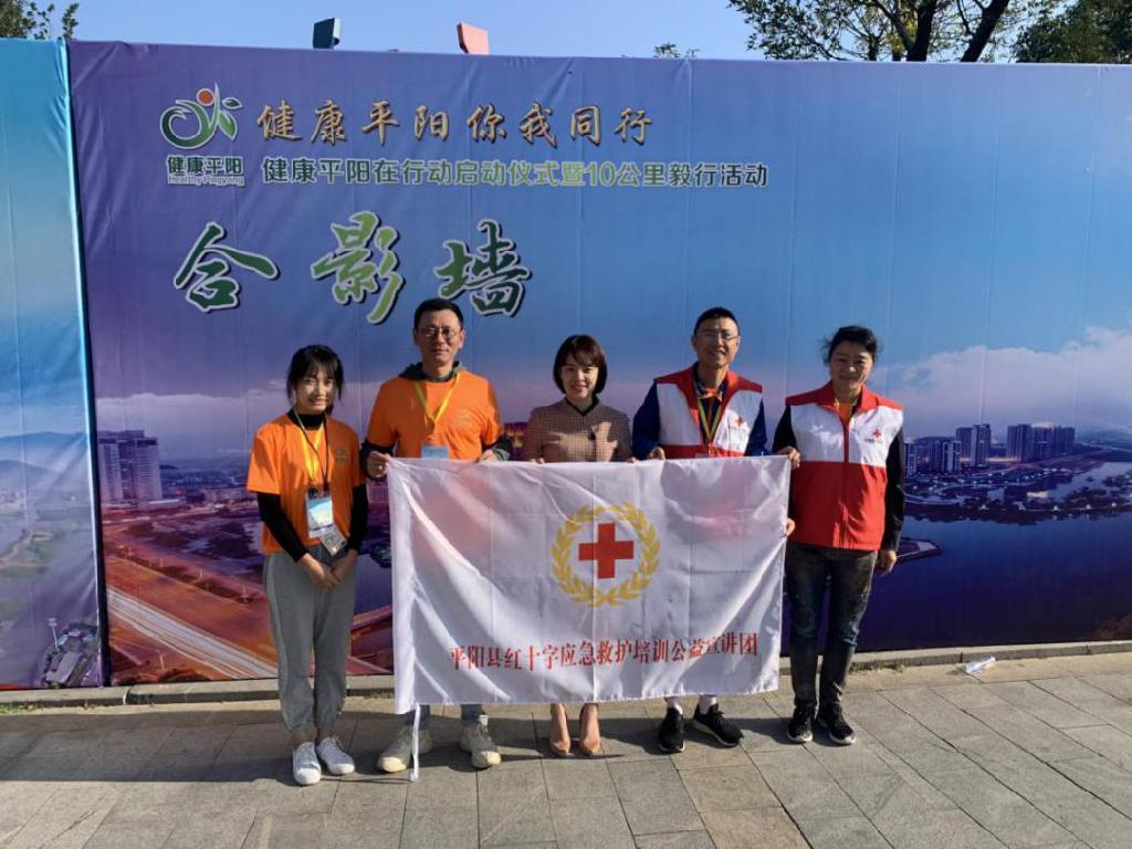 平阳县红十字会在现场设立红十字知识展、红十字流动服务站和红十字应急救护技能互动体验项目。