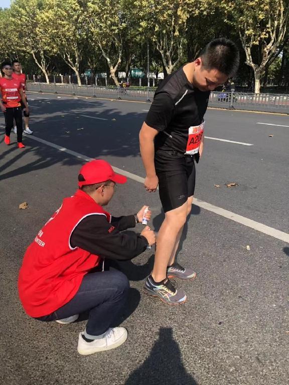 观察哨医疗志愿者按照每50-100米/人在整个赛道上分布,实时瞭望赛道及周边情况,对赛道上的跑者及围观群众出现的紧急情况予以初步判断,及时传递互救信息至赛道救援人员。喷雾医疗志愿者在赛道的后半程辅助医疗站点工作人员对需要帮助的参赛人员进行喷雾,并兼顾观察哨职责。