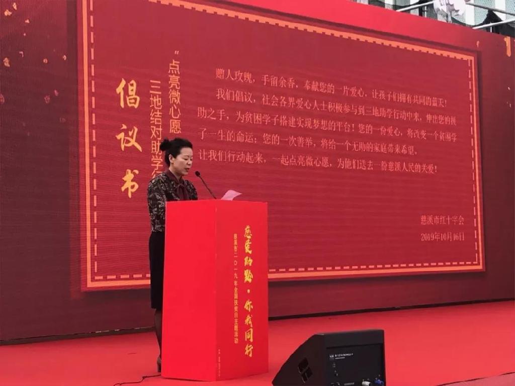 10月16日,慈溪市举行“慈爱助黔·你我同行”全国扶贫日主题活动,慈溪市红十字会联合安龙县红十字会、兴仁市红十字会携手慈溪市蓝天下爱心工作室又一次开展“点亮微心愿 爱在蓝天下”三地红十字助学行动。