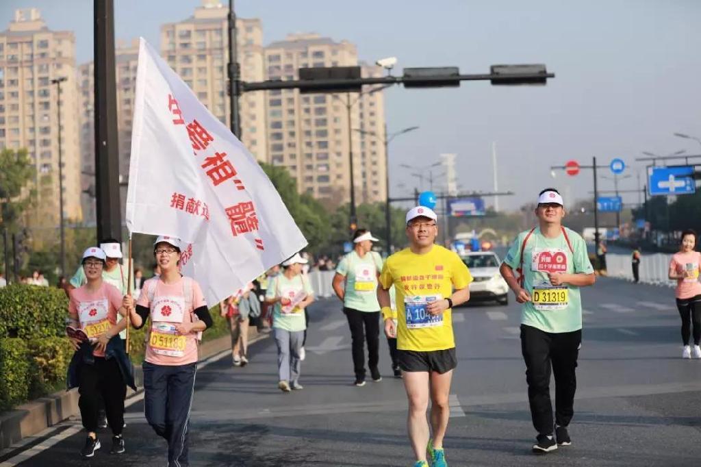 其中,造血干细胞捐献者靳毅参加21.0975公里的半程马拉松。他依旧在胸前贴着“捐献造血干细胞,我行你也行”的标语。以自身“跑马”的精神,告诉身边更多的人,捐献无损健康,我行你也行。