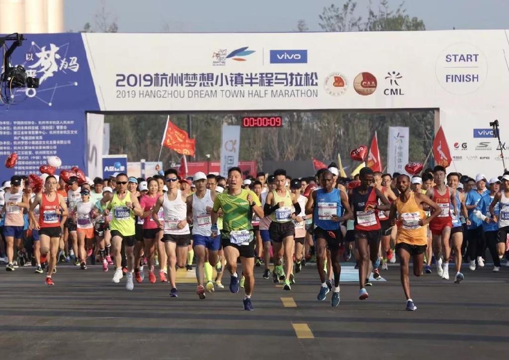 10月20日上午7点半,随着一声发令枪响,2019杭州梦想小镇半程马拉松闪亮起跑。多个国家和地区的近万名参赛运动员,甩开梦想的步伐。