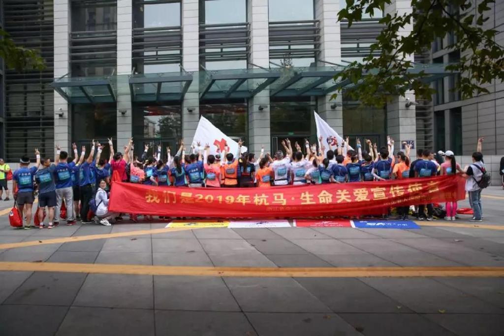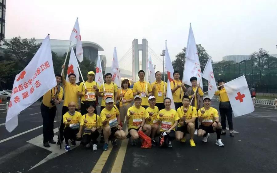 跑过风景,跑过你,红十字旗帜在杭马赛道上迎风飘扬!