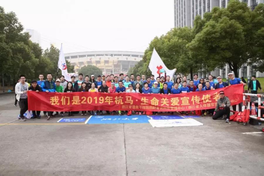 11月3日早上6点,杭马·“生命关爱宣传使者”集合。省红十字会团体会员——省人民医院、浙医一院、浙医二院、邵逸夫医院等单位组成的跑团来了,由造血干细胞捐献者组成的“小黄人”跑团来了,现场招募的跑者和浙大求是跑团、“生命之舟”志愿服务队也兴致勃勃地加入了宣传行列。他们在杭马的赛道用快乐、健康奔跑,宣传“关爱生命,助力造血干细胞和人体器官捐献”。