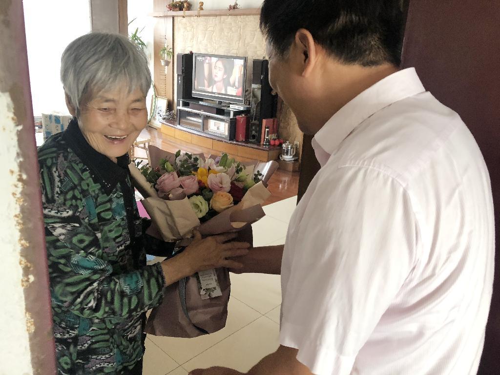 在走访中,慰问组与老人们进行了亲切交谈,了解他们的近况,大爱老人们对红十字工作人员的来访即意外又激动,当收到红十字会送上的鲜花、慰问品,更是一再的表示感谢,久久地握着红十字工作人员的手,激动不已:“我们只是做了一点点小事,你们又来看望我们了,谢谢红十字会,谢谢你们……”。