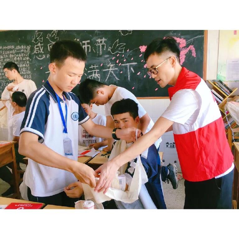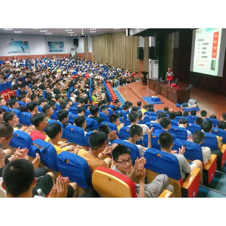 学生们对急救新知识和技能的学习也非常认真,他们的接受能力也很强,很多学生反映这样的课程很实用。通过培训,学生们懂得了“黄金四分钟”抢救时间概念,同时也学会了心肺复苏操作,了解了AED的使用及一些简单的创伤包扎。