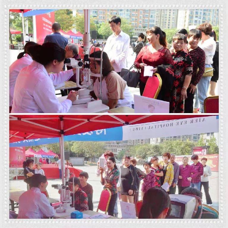 签约仪式结束后,爱尔眼科医院医疗志愿者团队给眼疾患者进行义诊。