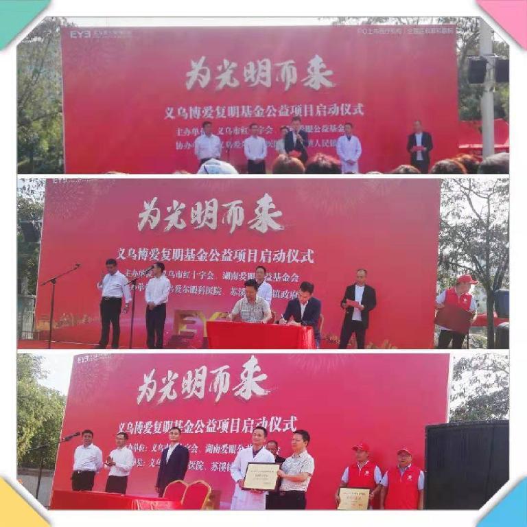 义乌市红十字会常务副会长许显正在仪式上指出,湖南爱眼基金会捐赠300万,设立“博爱复明基金”,这将为我市眼疾患者带来福音,也将带动我们商城社会各界对爱心事业的广泛参与,从而进一步形成扶危济困、乐善好施、互相帮助的良好社会风尚。许显正会长表示,希望此次“博爱复明基金”的设立能够成为一个新的开端,让更多的爱心人士来关心支持红十字会事业,奉献爱心,帮助他人,筑起爱心丰碑!让无力者有力,让悲观者前行!让“博爱之花”在义乌大地处处绽放!