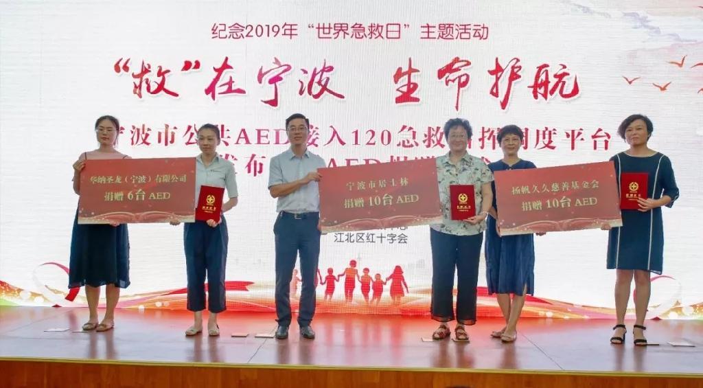 我市公共场所AED配置工作,得到了社会各界的大力支持。在活动现场,宁波市居士林捐赠10台AED、扬帆久久慈善基金会捐赠10台AED、华纳圣龙(宁波)有限公司捐赠6台AED。这26台AED将安放在市图书馆、市博物馆、部分福利院、敬老院等老年活动场所和学校等人流密集的公共场所。