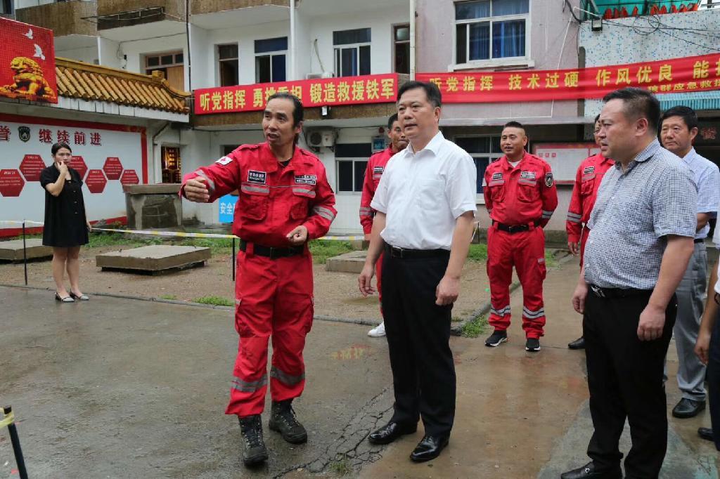 9月2日,富阳区委书记朱党其走访调研区红十字狼群应急救援队,向大爱无疆的救援队员们致以崇高的敬意。区委常委、组织部部长仰中旻参加走访。