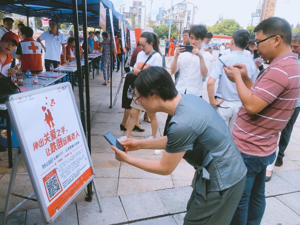 在99公益日宣传及义卖区,市民们纷纷驻足了解详情,并掏出手机现场捐赠爱心款。当天累计收到捐赠及义卖款16万余元,将全额用于老人爱心防跌包的采购。
