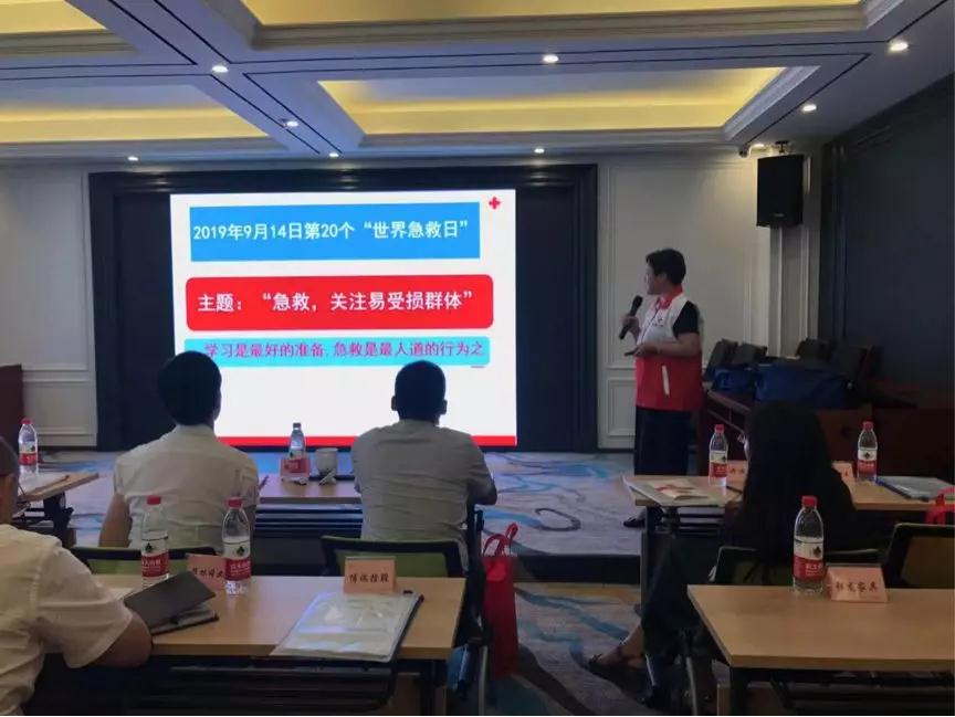世界急救日期间,安吉县红十字会应急救护活动走进县工商联八届六次常委会,组织县工商联领导机关,开发区、乡镇(街道)商会秘书长学习心肺复苏、气道异物梗阻等应急救护知识。