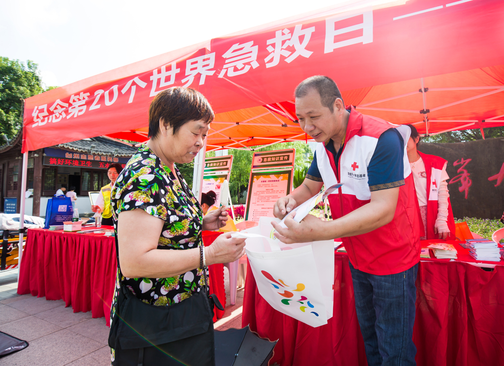 9月12日上午,台州市红十字会、台州市急救中心、黄岩区红十字会等单位在黄岩区九峰公园内开展台州市2019年“世界急救日”主题宣传活动:纪念第20个世界急救日——“急救,关注易受损群体”。