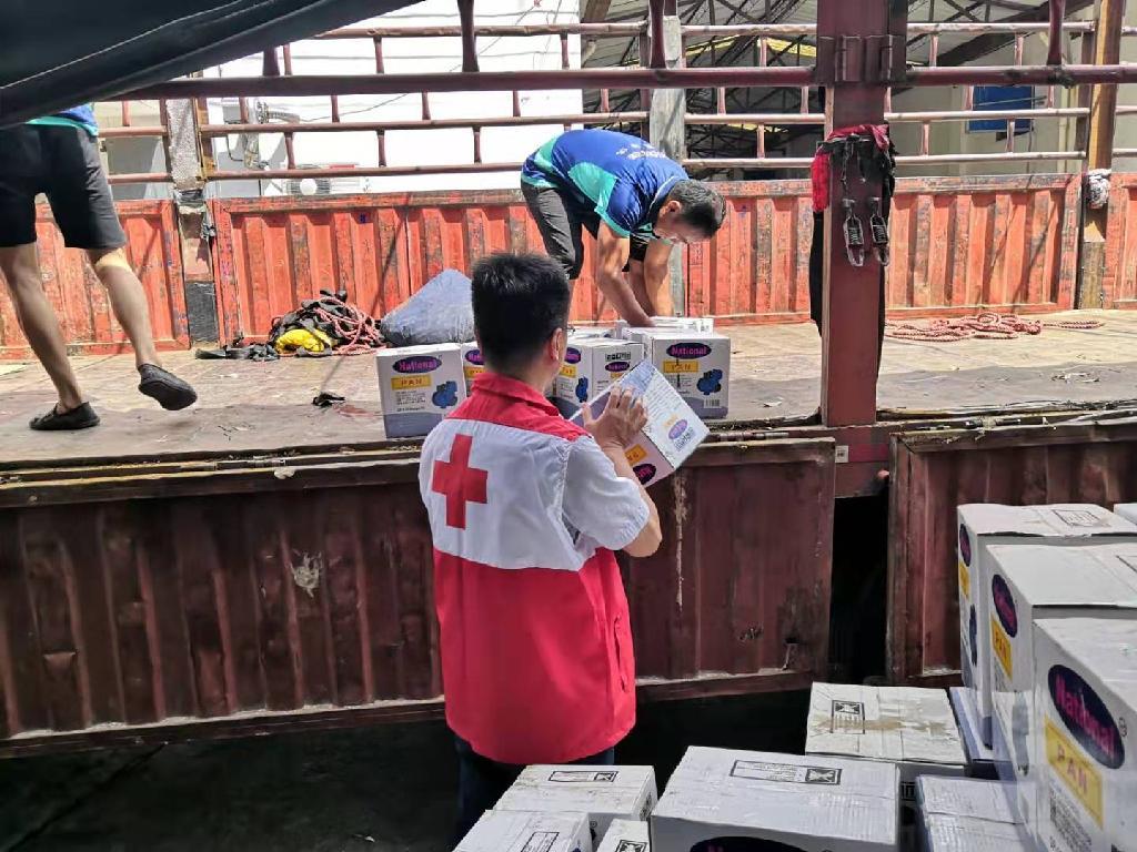 2019年8月末,在位于江北庄桥的一个仓库里,一箱箱装满毛毯、袜子、帽子、足球、抽水泵的物资被搬上了集装箱,180万的物资将分两批,装载着江北人民的爱心,启程,跨越2000多公里,送到贵州册亨大山移民和贫困学生等群众的手中。