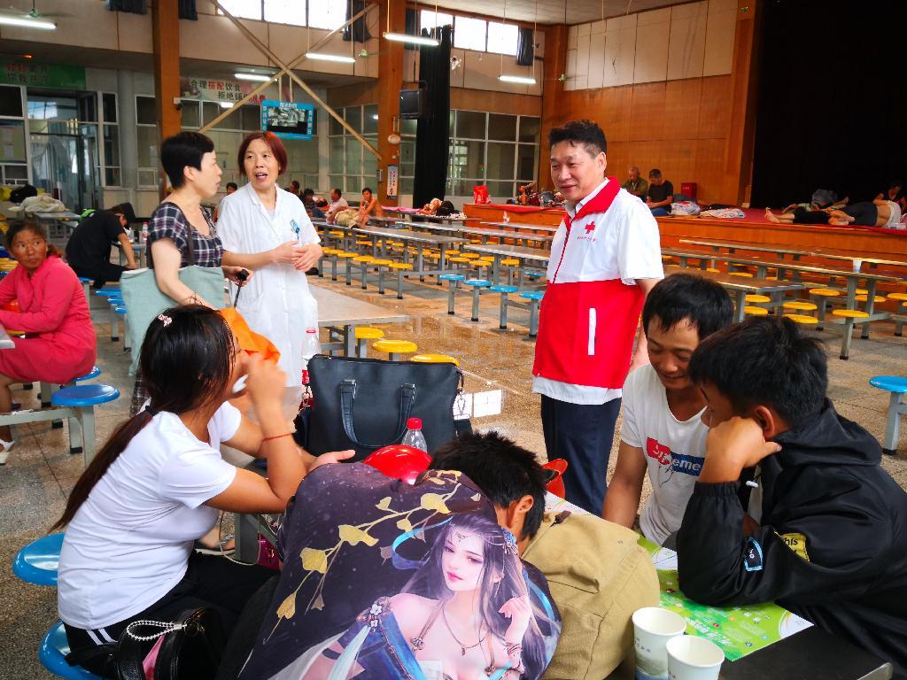 8月10日下午,区红十字会常务副会长许爱群带领志愿者奔赴各个安置点,了解居民目前身体情况,告知如有需要请及时联系红十字会志愿者,并送上急救包。