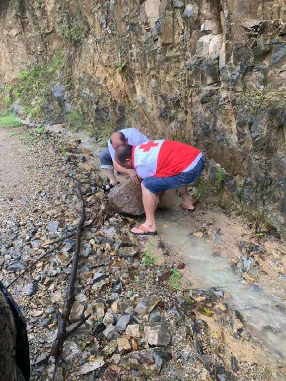 红十字救援队清理路障