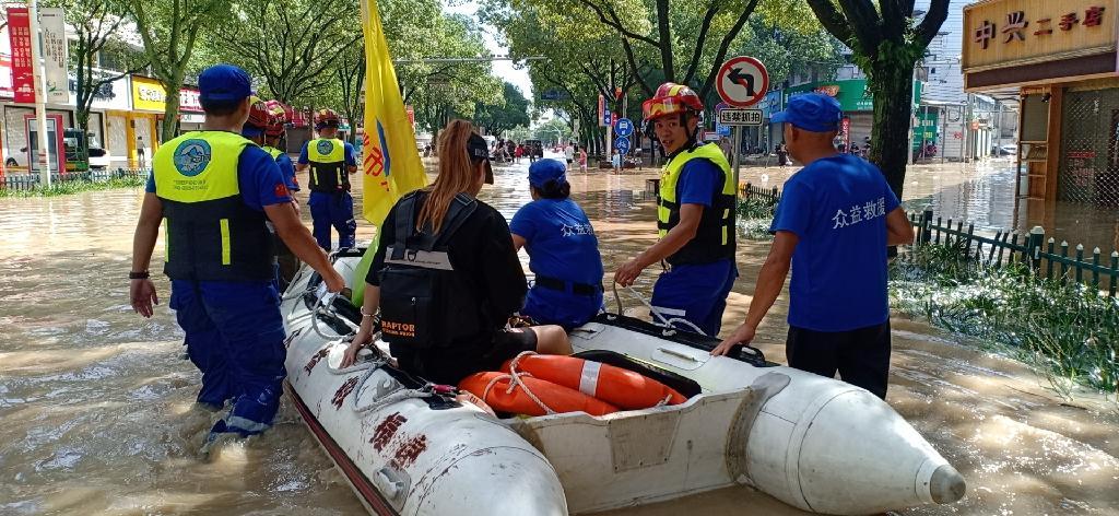 抵达灾区后,救援队在当地政府和省红十字会协调部署下,迅速展开道路清障、人员转移、垃圾清运、食物配送等救援工作。据红十字众益救援队队员描述,受淹地水流湍急、地势复杂,在冲锋舟被利器划破,马达罢工的情况下,队员们跳进水中推着冲锋舟前进。冲锋舟报废了还可以买,但群众的生命至高无上,队员们救援还在继续。截至11日下午收到返回指令,累计帮助转移受困群众120余名,运送救援物资0.8吨。