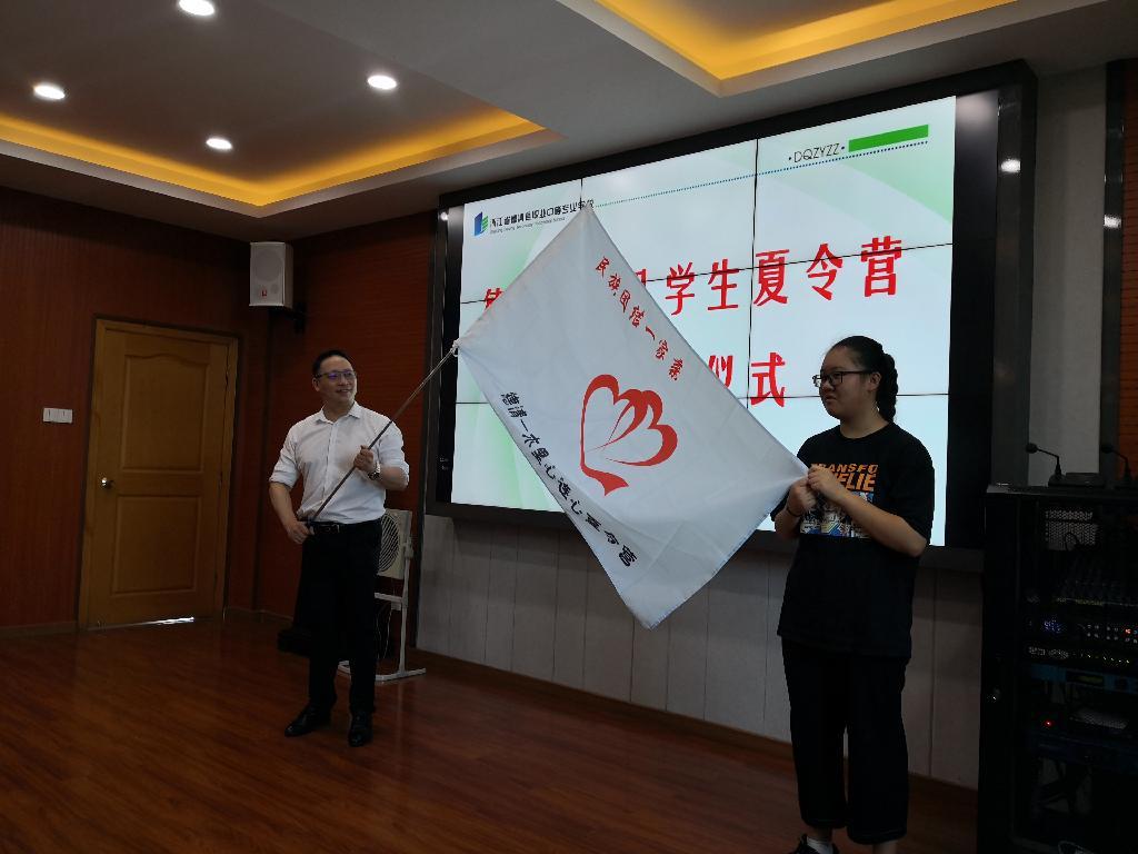 8月12日上午,德清——木里心连心学生夏令营开营仪式在德清县职业中等专业学校举行。德清县教育局党委书记、局长姚文忠,德清县经合办主任曹才良,德清县红十字会党组书记、常务副会长嵇开颜,德清县教育局副局长施敏丽,四川省凉山彝族自治州木里藏族自治县教科体局青少年活动中心主任史雪峰参加开营仪式。仪式上,与会领导共同为来自木里县的藏族、彝族、苗族、汉族的20名学员发放营服,并为夏令营授营旗。