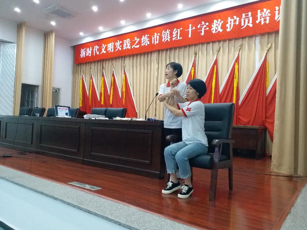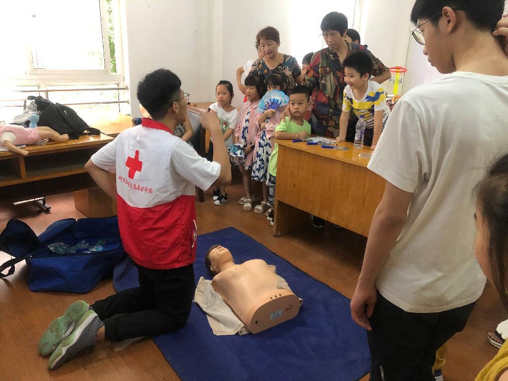 7月19日,湖东街道红十字会在三里桥社区、道场乡红十字会在浮玉社区开展暑期应急救护培训。