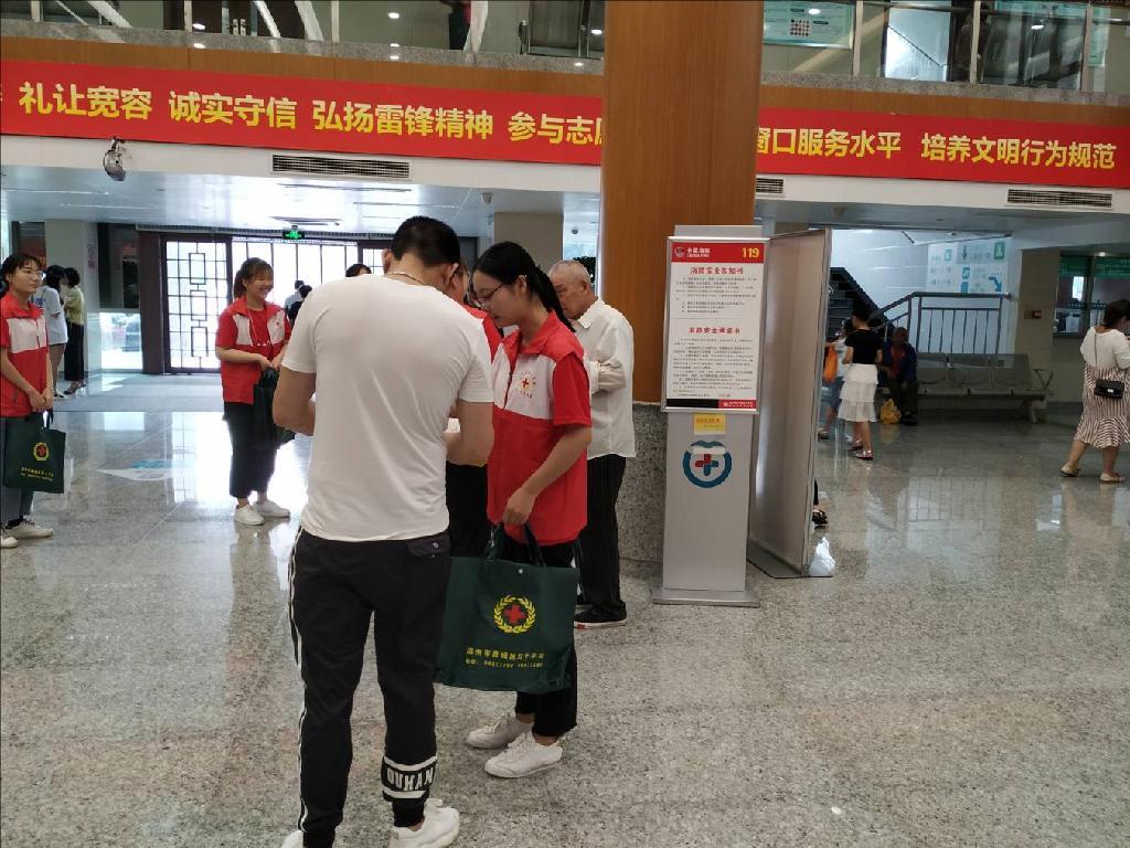 7月初,围绕“生命礼赞”红十字生命关爱宣传进社区活动,区红十字会党员干部带领浙江工贸职业技术学院红十字志愿者到横河社区以及市中西医结合医院开展 “红七月·服务月”,助力“三服务”。活动现场,志愿者结合社区、医院工作实际,针对性开展“救灾、救护、救助”,“献血、造血干细胞捐献、遗体器官捐献”等相关内容的宣传活动,给沿街商户分发宣传册,使大家对红十字会组织、精神、宗旨及工作有了深刻了解,提高他们对红会工作的知晓度。