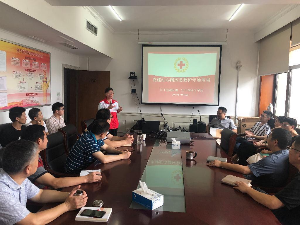 区红十字会的“党员固定主题日”活动中,与省、市红十字会共同开展“红心圆”服务已经成为一项固定的活动内容,通过发挥党建同心圆协作单位——省市红十字会在业务、项目等方面的资源优势,为辖区市民群众提供救护培训、帮扶救困等方面的多元化服务,着力提升服务对象的幸福感、安全感、获得感。7月15日上午,来自省红十字会的浙江省一级急救培训师资王翠兰和陈海调应邀赴区统计局,为局机关的30余名机关党员干部送上“红十字应急救护”专场培训。授课中,红十字急救培训师资结合丰富的急救案例,将心肺复苏、自动体外除颤器(AED)使用、呼吸道异物梗阻处置等急救知识点悉心传授给机关干部,并在心肺复苏实际操作中“手把手”出手动作要领,受到学员的欢迎。