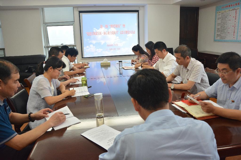 “博爱课堂”采取学习辅导与交流相结合的方式进行。每期一个党建学习主题,由1-2名党员进行主题交流发言,重点结合实际工作谈理论学习体会。其余同志围绕议题展开讨论,强化思想认识。第一期“博爱课堂”邀请舟山市委党校的林巧老师进行了“两个维护”授课。授课完毕后,市红十字会办公室(赈济处)副主任、渔农村工作指导员唐冲同志围绕 “党建引领谋发展·凝心聚力促振兴”作了主题发言交流,同志们开展热烈讨论,表态将积极响应市委社改工作要求,结合业务做好宣传宣讲工作。