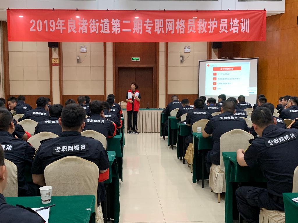 5月中旬,良渚街道红十字会邀请余杭区红十字救护培训团队开展了为期2天的专职网格员救护培训,为辖区76名专职网格员参加培训。