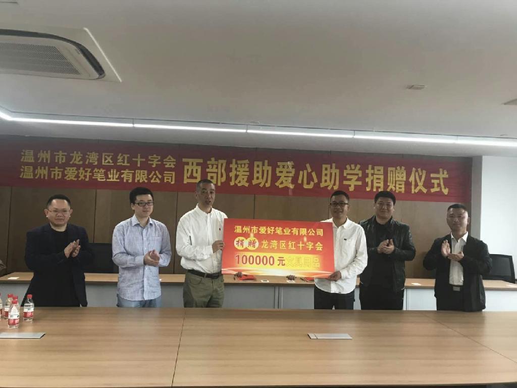 日前,龙湾区红十字会联合温州市爱好笔业有限公司举行西部援助爱心助学捐赠仪式。活动现场,双方签署了西部援助项目捐赠协议书。