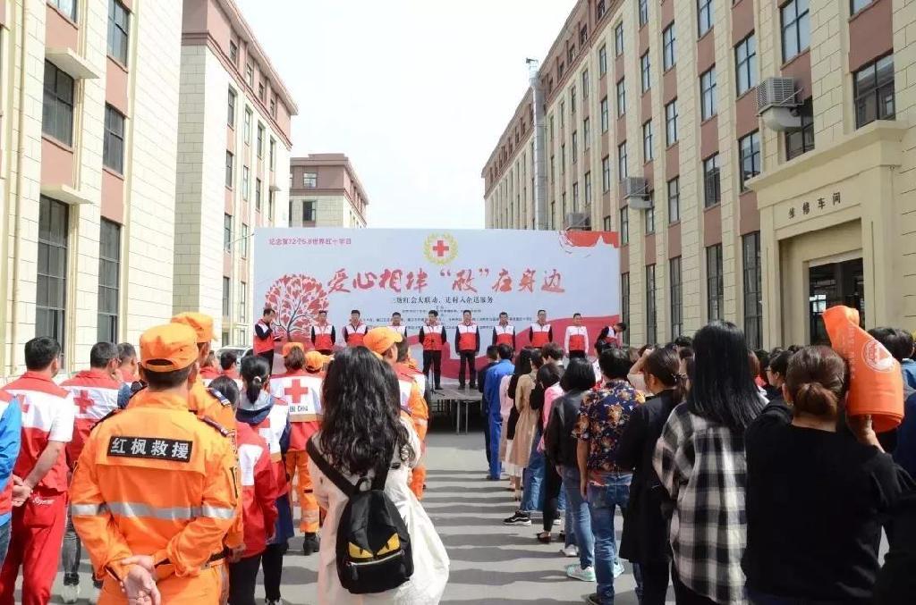 在校园内分别设立了红十字运动知识和应急救护知识问答区、心肺复苏体验区等。