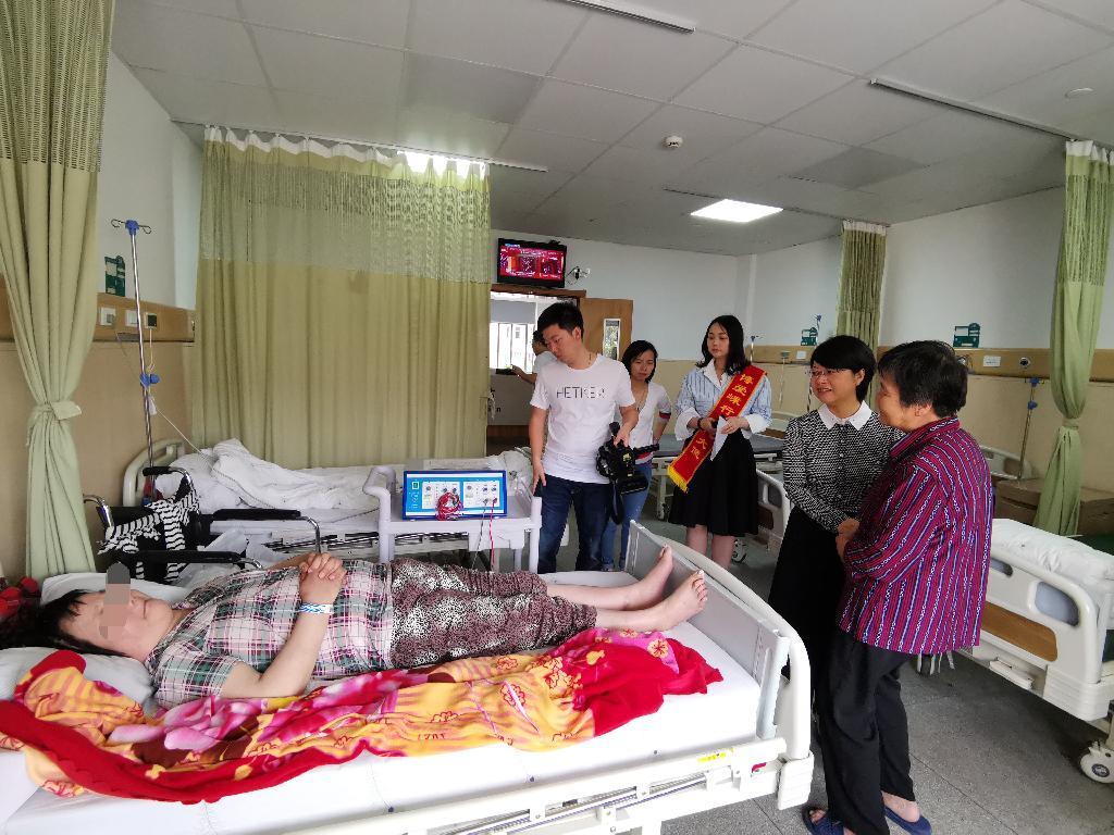 5月22日,嵊州市红十字会和电视台“帮忙三人行”栏目组一行专程去看望了爱心妈妈方雅云一家3人。