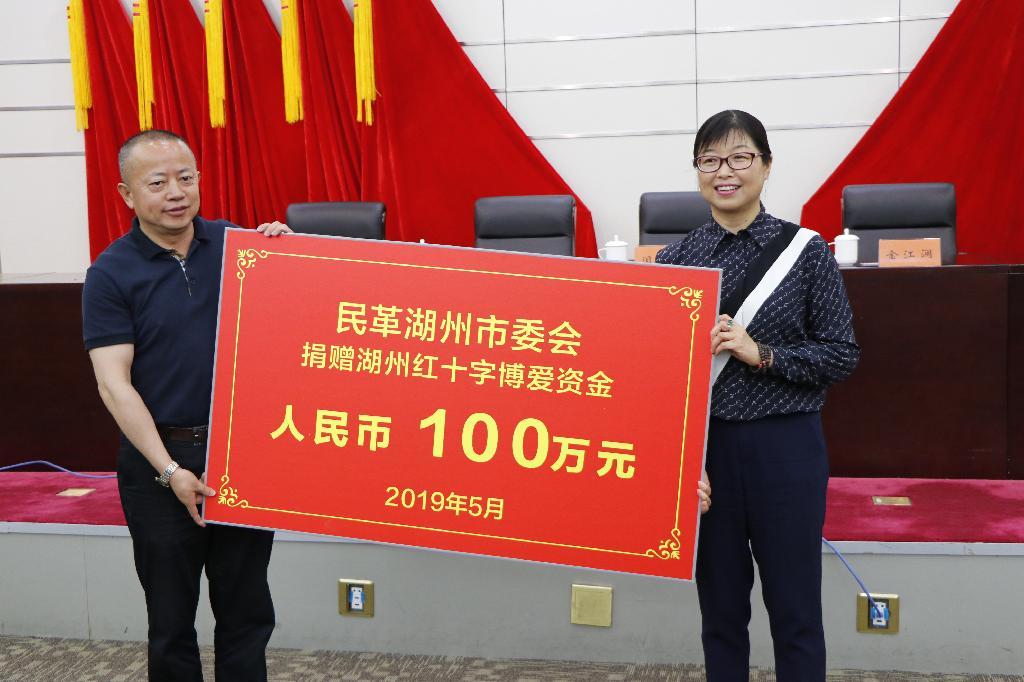 会议期间还举行了湖州红十字博爱资金捐赠仪式,湖州第六医院、民革湖州市委会分别向湖州市红十字会捐赠资金100万元,闵云会长代表湖州市红十字会接受了捐赠。