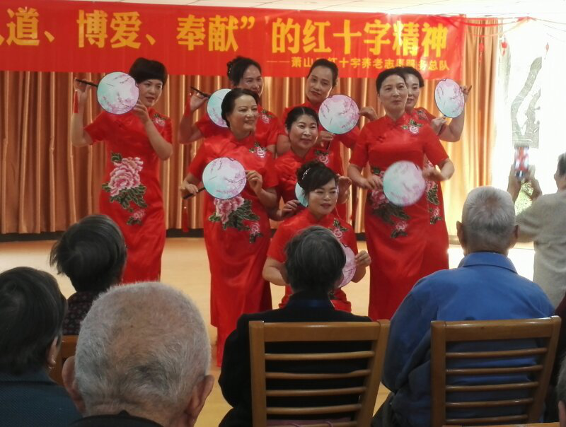 在5月8日第72个世界红十字纪念日来临之际,为传播和弘扬“人道、博爱、奉献”红十字精神,关心关爱老年人,萧山区红十字养老志愿服务总队在五四青年节这天走进萧山颐乐养老院,开展慰问演出活动及爱心理发等志愿服务活动。