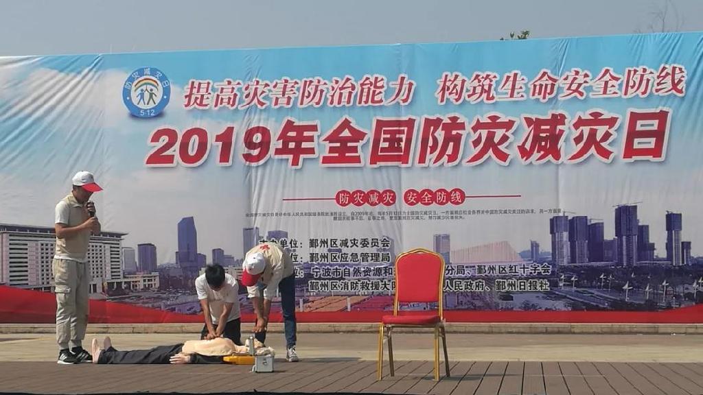 5月9日,宁波市鄞州区红十字会在五乡镇文化中心广场举行以“提高灾害防治能力,构筑生命安全防线”为主题的第十一个全国防灾减灾日纪念活动。