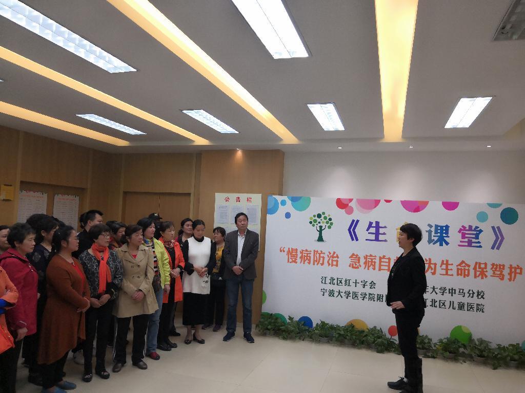 “大家看我,一瘸一拐的,12天前,我意外从2楼摔落,造成了左脚脚跟骨折,右肩骨裂。仅仅12天后,我就能从1楼慢慢走到3楼,走到大家的面前,参加‘生命课堂’的开班仪式,因为我是一名医生,我懂得意外发生时候的正确自救,才能让后续的治疗和恢复质量更高……”随着宁波大学医学院附属医院许素玲院长的一段别开生面的开场白,由江北区红十字会和江北区老年大学中马分校、宁波大学医学院附属医院、江北区儿童医院联合筹备的关于“慢病防治,急病自救”的“生命课堂”,在第72个“五八”世界红十字日到来之际正式开班。