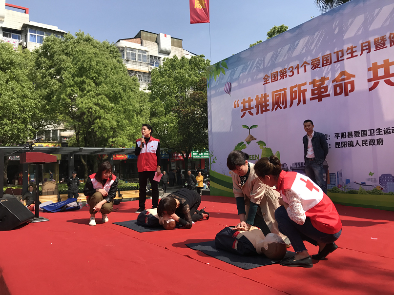 4月18日上午,全国第31个爱国卫生月活动在昆阳镇曦龙广场举行。作为协办单位的平阳县红十字会在现场开展了急救知识宣传活动,零距离深入推进“三服务”工作,呼吁民众重视急救知识的普及,让更多的人士掌握急救技能技巧,在事发现场挽救生命和降低伤害程度,从而最大限度地保护生命和健康。