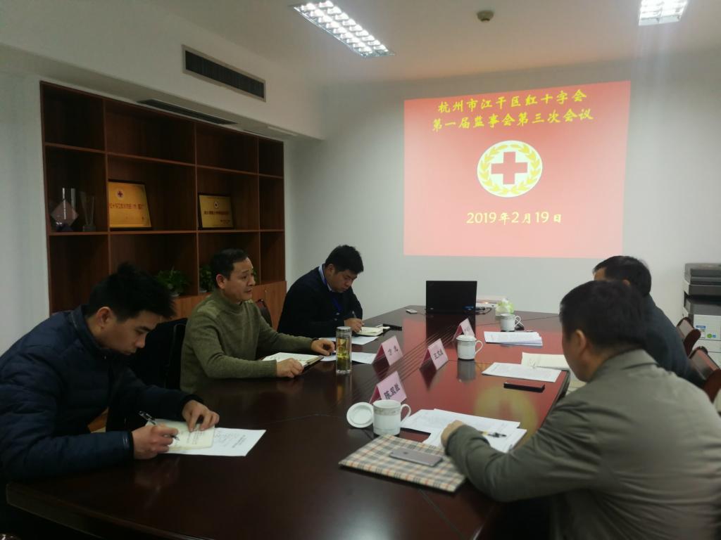 2月19日,杭州市江干区红十字会监事会召开2019年第一次工作会议。监事长王文彪主持会议并讲话,区红十字会党组成员、副会长方虎应邀出席会议。